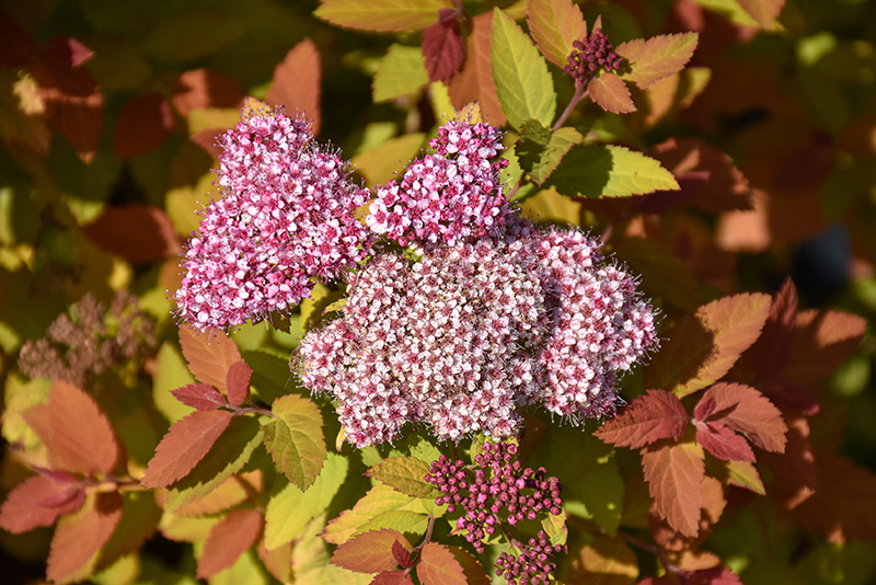 This variety features orange-red emerging foliage that transitions to deep yellow; clusters of pink and hot pink blooms in spring and summer; a fantastic garden focal point for the spring and summer