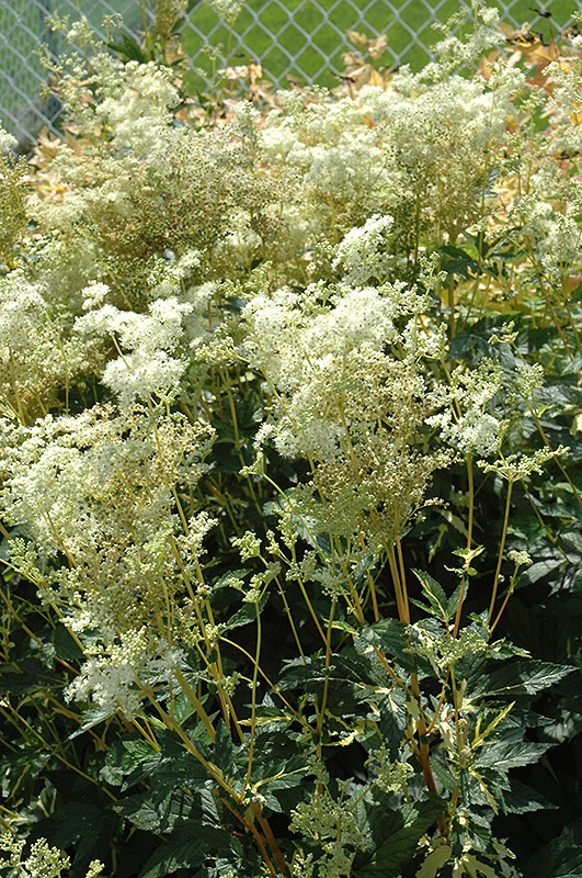 Variegated Queen Of The Meadow features delicate panicles of white flowers at the ends of the stems from early to mid summer. The flowers are excellent for cutting. Its attractive serrated narrow compound leaves remain forest green in color with showy creamy white variegation throughout the season.