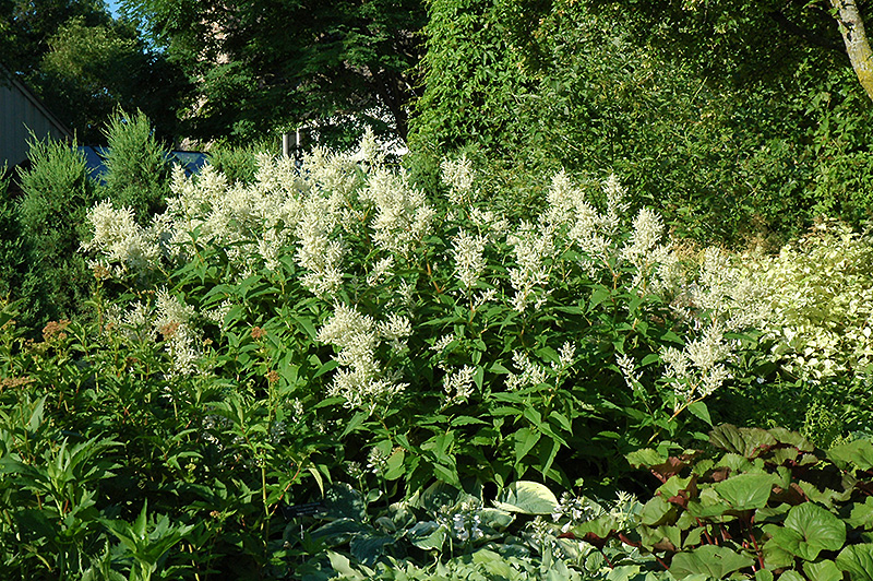 White Fleeceflower features airy spikes of creamy white flowers rising above the foliage from early summer to early fall. The flowers are excellent for cutting. Its pointy leaves remain green in color throughout the season.