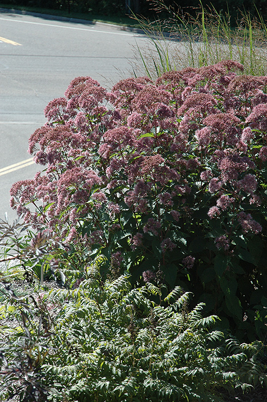 Little Joe Dwarf Joe Pye Weed will grow to be about 3 feet tall at maturity extending to 4 feet tall with the flowers, with a spread of 3 feet. When grown in masses or used as a bedding plant, individual plants should be spaced approximately 24 inches apart. It grows at a medium rate, and under ideal conditions can be expected to live for approximately 15 years. As an herbaceous perennial, this plant will usually die back to the crown each winter, and will regrow from the base each spring. Be careful not to disturb the crown in late winter when it may not be readily seen!