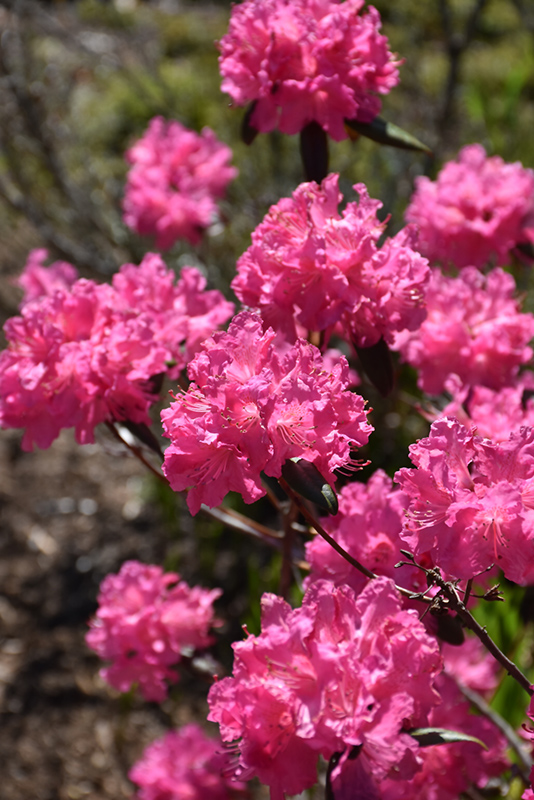 Landmark Rhododendron is smothered in stunning clusters of fuchsia trumpet-shaped flowers with red spots at the ends of the branches in mid spring. It has dark green evergreen foliage. The narrow leaves turn an outstanding coppery-bronze in the fall, which persists throughout the winter.